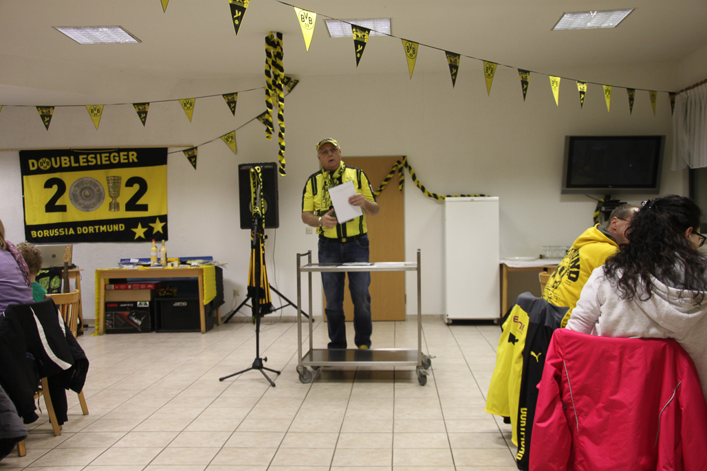 Als wolle die Insel mit uns mitfeiern präsentierte sich der 28. Januar in strahlendem Sonnenschein, als sich im Jungenddorf Drewoldke insgesamt 42 bestens gelaunte Borussen einfanden, um gemeinsam einen tollen Abend zu verbringen. Und das wurde es dann auch. BVB-Fans aus drei Fanclubs feierten, tanzten, fachsimpelten, aßen, tranken und sangen, bis die Hüter des Gesetzes kamen. Nach dem offiziellen Teil, in dem uns unser Vorsitzender Jürgen Sander in seinem „kurzen“ Rechenschaftsbericht über die neuesten Entwicklungen des Vereins und über besondere Ereignisse seit dem letzten Fantreffen informierte, traten die Inselborussengrillpioniere ihren beispiellosen Dienst an. Allerlei leckeres Grillgut kombiniert mit liebevoll von unseren Borussinnen zubereiteten Salaten ließen keine Wünsche offen und die aufgenommenen Kalorien wurden anschließend bei einer zünftigen schwarzgelben Diskothek wieder abgearbeitet. Ob Calbenser Borussen, Borussensterne oder Inselborussen – jeder kam auf seine Kosten. Ein herzliches Dankeschön für ein Großteil der Fotos an Harald Rogge.